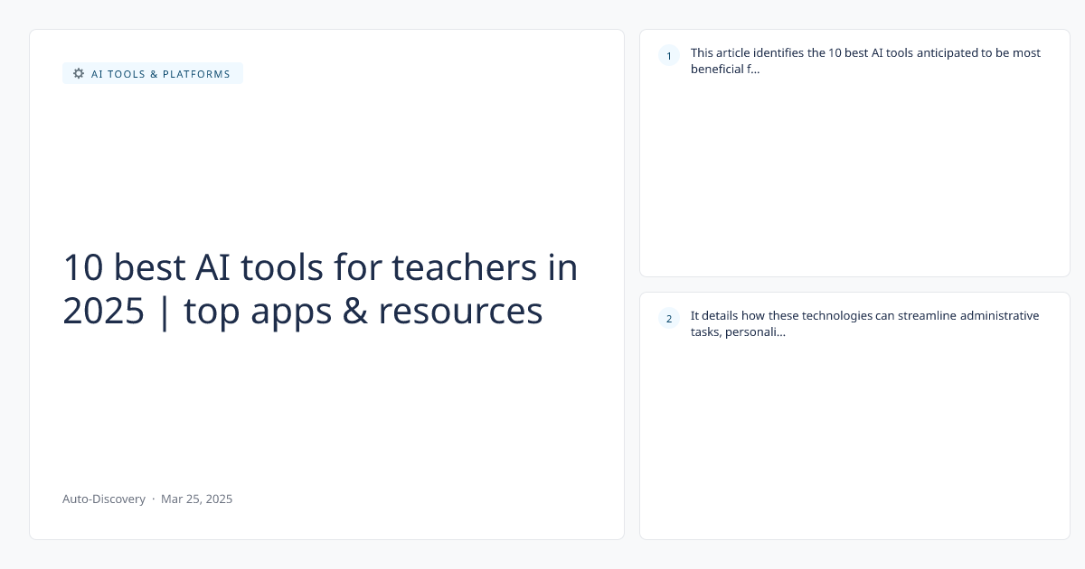 This article identifies the 10 best AI tools anticipated to be most beneficial for teachers by 2025, offering a comprehensive look at top applications and resources. It details how these technologies can streamline administrative tasks, personalize learning experiences, and enhance overall educational delivery. The highlighted tools aim to equip educators with innovative solutions to improve efficiency and student engagement in the coming years.