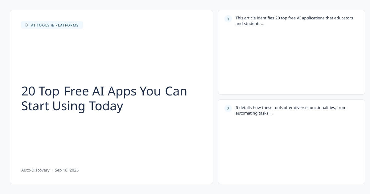 This article identifies 20 top free AI applications that educators and students can immediately utilize to enhance learning. It details how these tools offer diverse functionalities, from automating tasks to personalizing educational experiences, improving efficiency and engagement in the classroom.