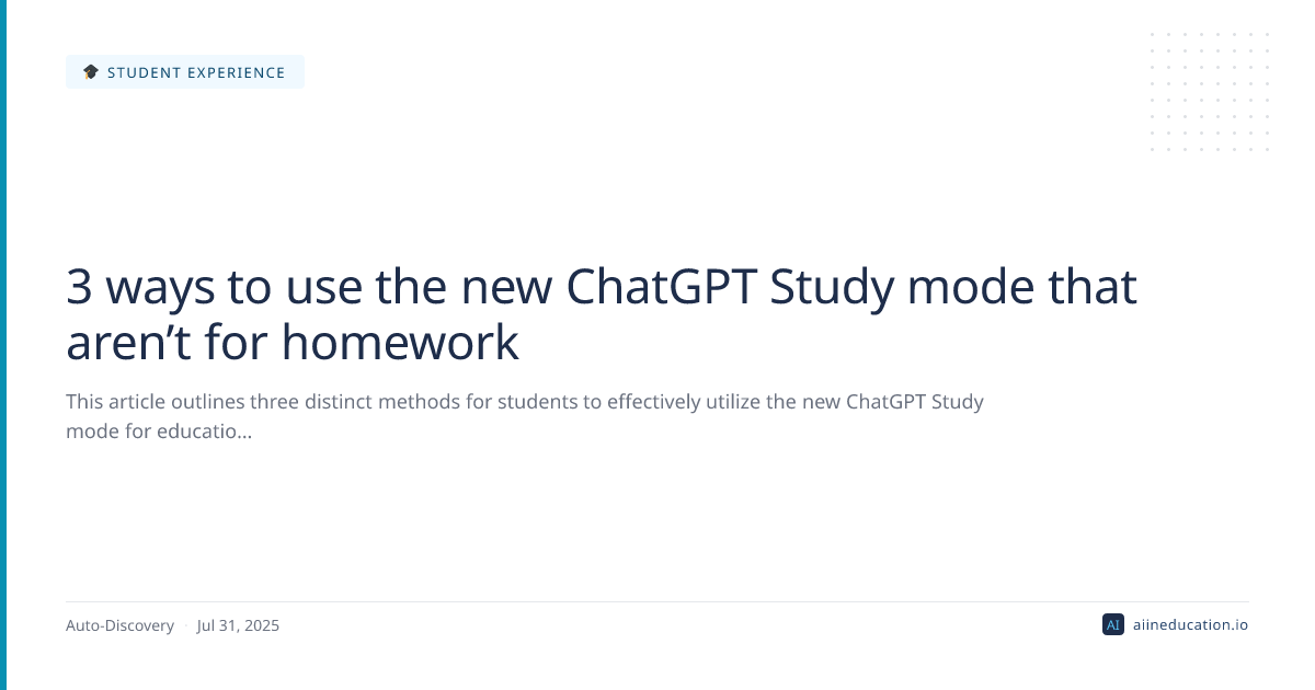 This article outlines three distinct methods for students to effectively utilize the new ChatGPT Study mode for educational enhancement beyond direct homework completion. It details how this AI feature can serve as a powerful study aid for deepening understanding, practicing concepts, and preparing for exams, emphasizing its role in legitimate learning rather than as a shortcut for assignments.