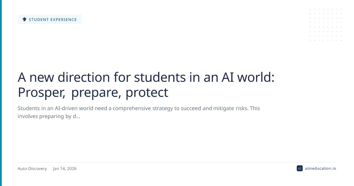 The "prosper, prepare, protect" framework underscores the urgent need for educators and institutions to move beyond reactive AI integration towards a proactive, strategic reimagining of student readiness. This broader trend reflects a growing understanding that education must cultivate not just AI proficiency, but also the ethical grounding and human-centric skills necessary to thrive in an AI-augmented world. Practically, this means embedding AI literacy, critical thinking, and ethical frameworks directly into curricula, ensuring students are equipped to lead and innovate responsibly.