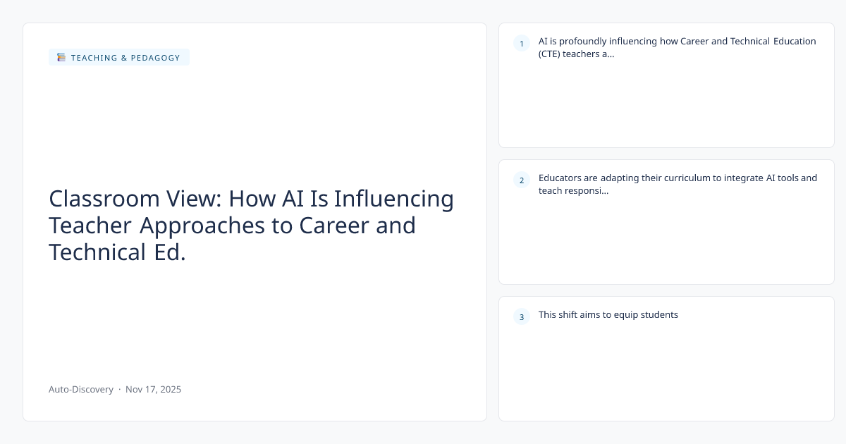 AI is profoundly influencing how Career and Technical Education (CTE) teachers are preparing students for future careers. Educators are adapting their curriculum to integrate AI tools and teach responsible AI usage, recognizing its growing impact on the job market. This shift aims to equip students with the critical skills needed to thrive in an AI-driven professional landscape.