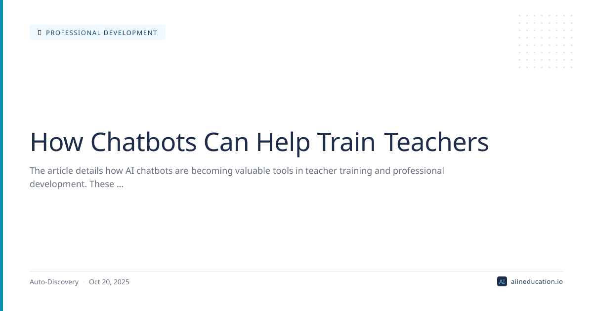 The article details how AI chatbots are becoming valuable tools in teacher training and professional development. These platforms can simulate diverse classroom scenarios, offering educators a safe environment to practice skills like lesson planning and behavior management, while receiving personalized feedback to enhance their preparedness for real-world teaching challenges.