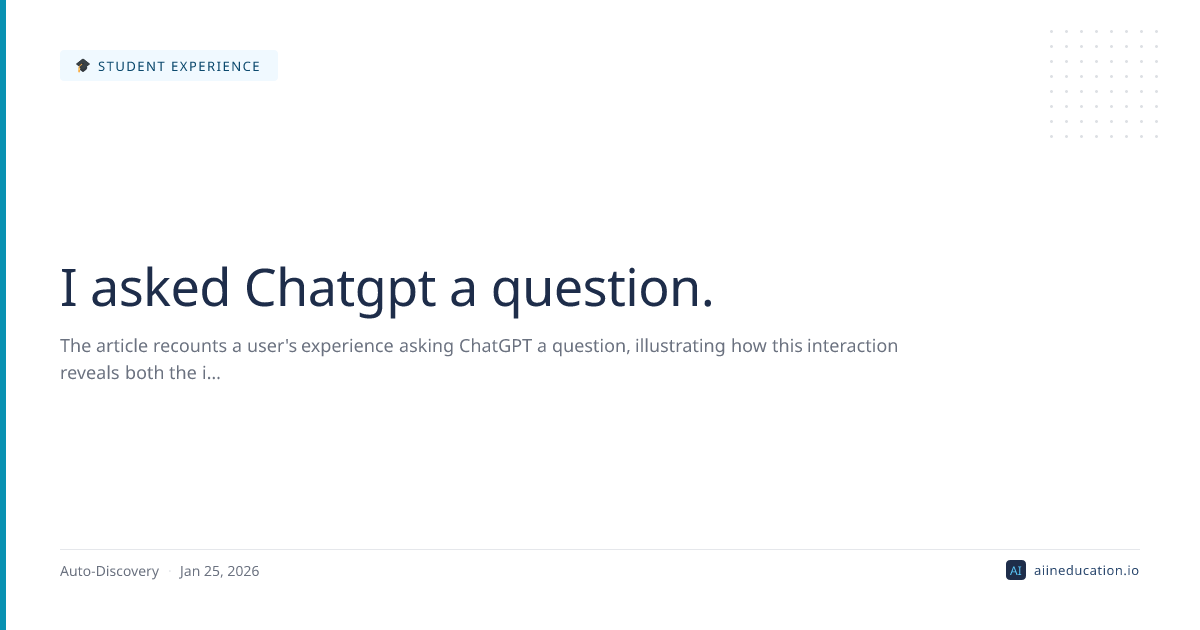 The article recounts a user's experience asking ChatGPT a question, illustrating how this interaction reveals both the immediate utility and the inherent complexities of AI in education. It details AI's potential to revolutionize learning by offering quick answers and support, while simultaneously emphasizing the critical need for developing students' analytical skills and for educators to redefine their roles.