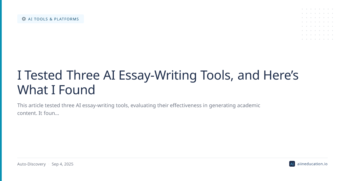 This article tested three AI essay-writing tools, evaluating their effectiveness in generating academic content. It found that while these tools demonstrate considerable proficiency in producing coherent essays, they often struggle with critical depth, original thought, or nuanced arguments. The findings highlight significant implications for academic integrity and the evolving role of AI in education.