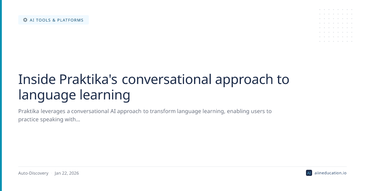 Praktika's conversational AI approach signals a significant acceleration in how technology can provide highly personalized, low-stakes practice essential for mastering complex skills like language. This matters immensely for students gaining unlimited opportunities to build fluency and for educators who can leverage AI to scale differentiated instruction beyond the classroom. The practical implication is a necessary re-evaluation of pedagogical models, shifting focus towards designing authentic learning scenarios that integrate AI-powered interactive partners effectively.