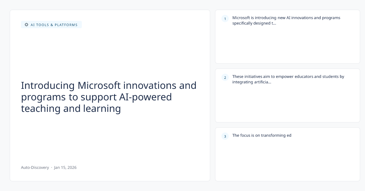 Microsoft is introducing new AI innovations and programs specifically designed to support and enhance teaching and learning experiences. These initiatives aim to empower educators and students by integrating artificial intelligence tools into educational environments. The focus is on transforming educational practices through advanced AI capabilities.