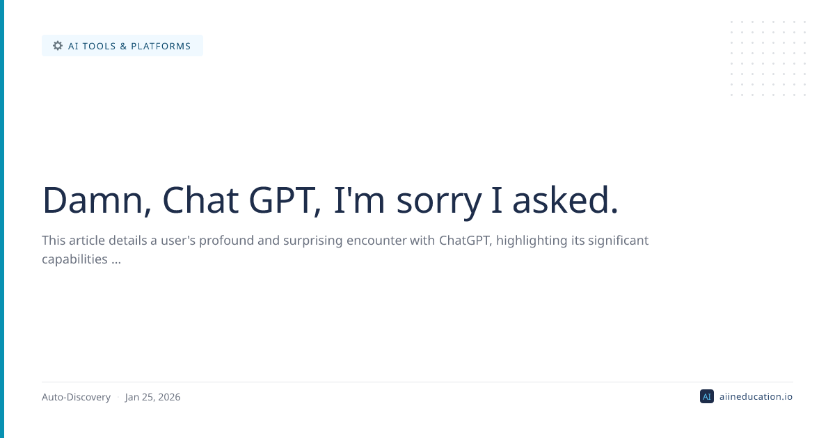 This article details a user's profound and surprising encounter with ChatGPT, highlighting its significant capabilities and immediate implications for education. It explores how AI tools like this present both a disruptive force for traditional learning and teaching methods, and raise critical questions about academic integrity and future pedagogical approaches.
