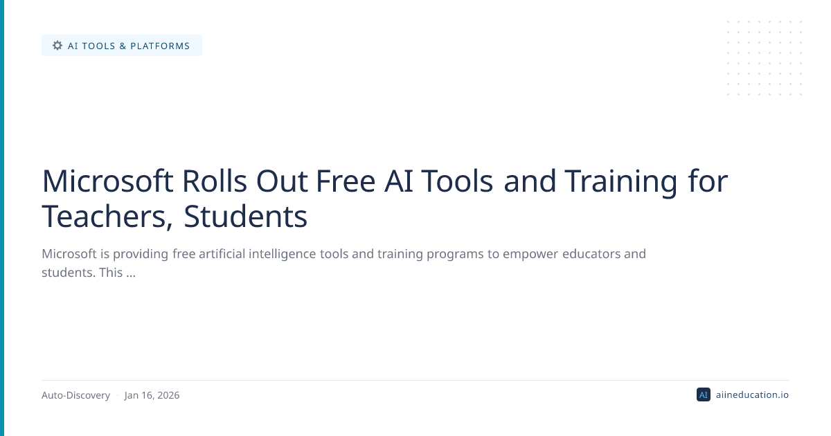 Microsoft is providing free artificial intelligence tools and training programs to empower educators and students. This initiative aims to integrate AI capabilities into classrooms, fostering new learning experiences and skill development across educational institutions.