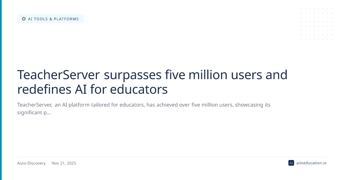 The rapid adoption of TeacherServer by five million users signals a critical inflection point where AI is no longer a niche tool but an essential component for educator efficiency and innovation. This trend highlights the education sector's readiness for purpose-built AI solutions that directly address teacher needs, moving beyond generic applications. Consequently, institutions must prioritize investing in secure, pedagogically sound AI platforms and robust professional development to empower teachers effectively.