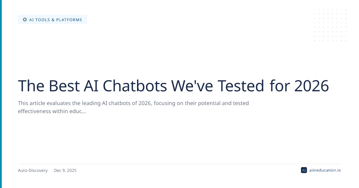 This article evaluates the leading AI chatbots of 2026, focusing on their potential and tested effectiveness within educational environments. It assesses which AI tools offer the most robust features for enhancing learning, teaching, and administrative tasks, guiding educators and students toward optimal choices. The piece likely provides a comparative analysis to inform integration strategies for AI in education.