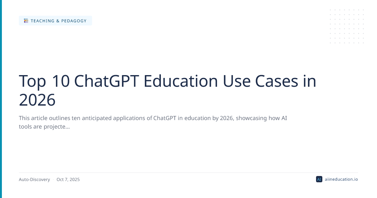 This article outlines ten anticipated applications of ChatGPT in education by 2026, showcasing how AI tools are projected to transform learning environments. It details various use cases expected to enhance teaching, personalize student experiences, and streamline administrative tasks. The piece emphasizes the growing and diverse role artificial intelligence is poised to play in future educational practices.