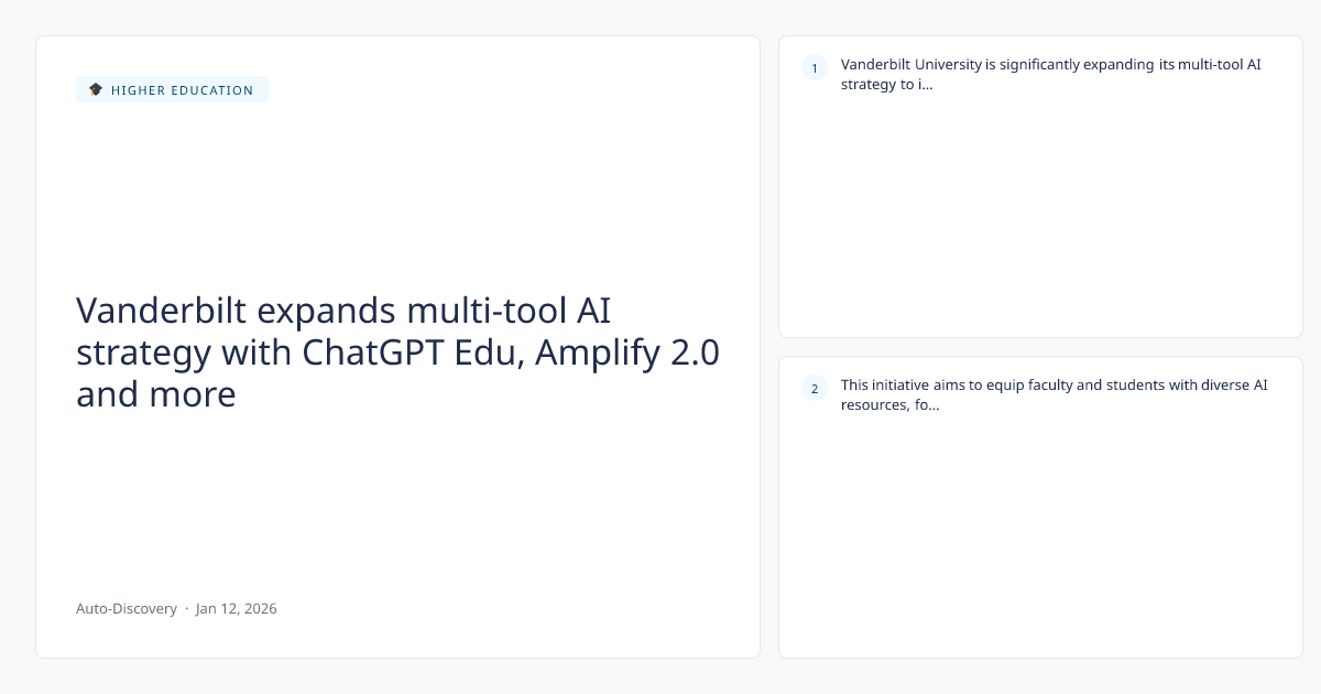 Vanderbilt University is significantly expanding its multi-tool AI strategy to integrate artificial intelligence into education, adopting platforms like ChatGPT Edu and Amplify 2.0. This initiative aims to equip faculty and students with diverse AI resources, fostering innovative teaching and learning methods across campus.