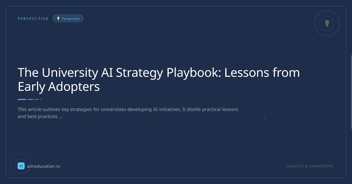 The advent of accessible generative AI tools like ChatGPT, Google Gemini, and Microsoft Copilot has thrust higher education into a fascinating, albeit often chaotic, new era. For universities, the initial knee-jerk reactions — ranging from outright bans to cautious experimentation — are rapidly maturing into strategic frameworks. As a senior education technology analyst, I've observed a fascinating evolution: early adopters, often propelled by necessity or visionary leadership, are now yielding invaluable lessons for institutions still grappling with their own AI strategies. This analysis delves into the emerging "University AI Strategy Playbook," dissecting the critical components, challenges, and successes encountered by institutions at the forefront.