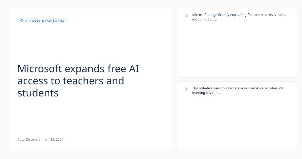 Microsoft is providing free artificial intelligence tools and training programs to empower educators and students. This initiative aims to integrate AI capabilities into classrooms, fostering new learning experiences and skill development across educational institutions.