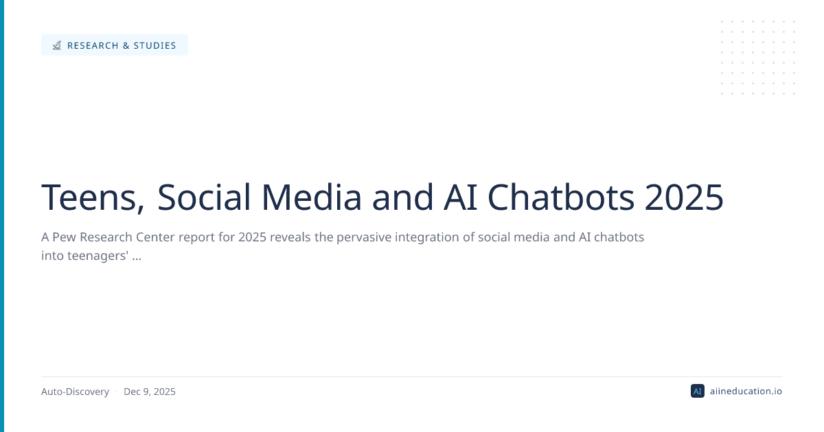 A Pew Research Center report for 2025 reveals the pervasive integration of social media and AI chatbots into teenagers' daily experiences. It explores how these tools are transforming adolescent communication and information consumption, carrying significant implications for educational approaches and student engagement.