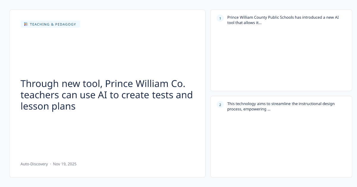 Prince William County Public Schools has introduced a new AI tool that allows its teachers to efficiently create tests and lesson plans. This technology aims to streamline the instructional design process, empowering educators to quickly develop classroom materials.